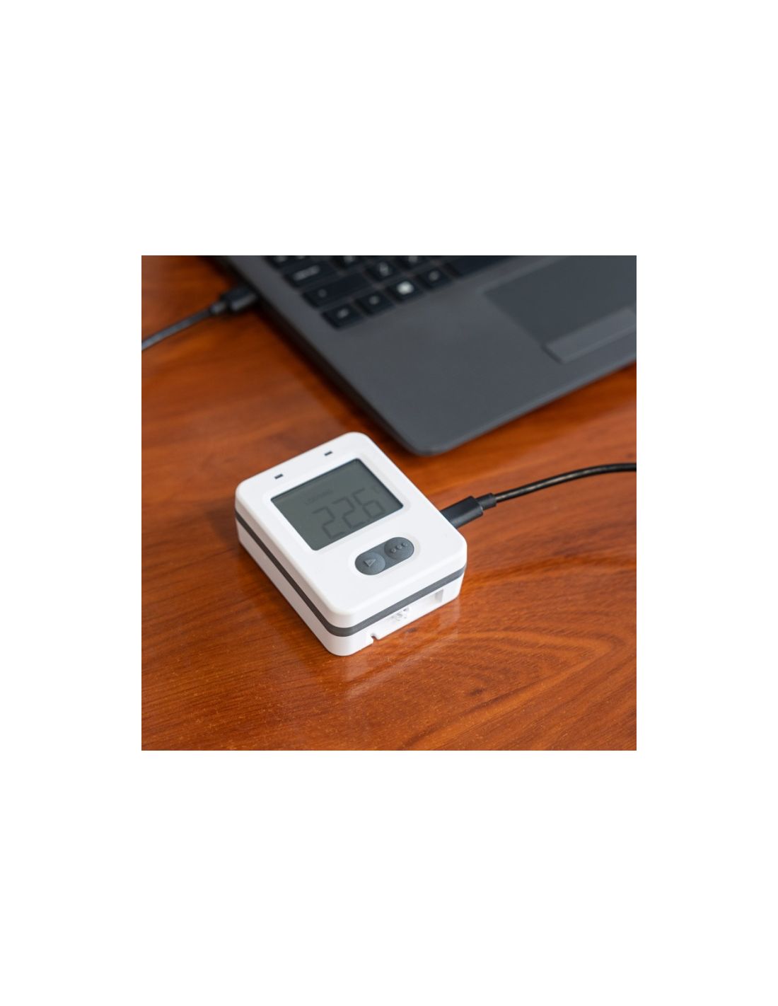 Miernik posiada wytrzymałą, wodoodporną obudowę o IP66/67 i jest wyposażony w wejście USB dzięki czemu można go łatwo podłączyć do komputera za pomocą przewodu USB-C (dołączonego do produktu) aby pobrać dane.